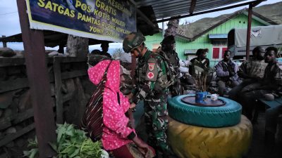 Barometer99– Peduli terhadap kesehatan dan upaya meningkatkan stamina/kebugaran tubuh bagi para siswa-siswi, Babinsa Koramil 1707-19/Atsj jajaran Kodim 1707/Merauke Sertu Yohanis Wuarlela memimpin senam pagi kepada para siswa-siswi Sekolah Dasar Inpres Sagarei Kampung Yefuwagi Distrik Awyu Kabupaten Asmat.