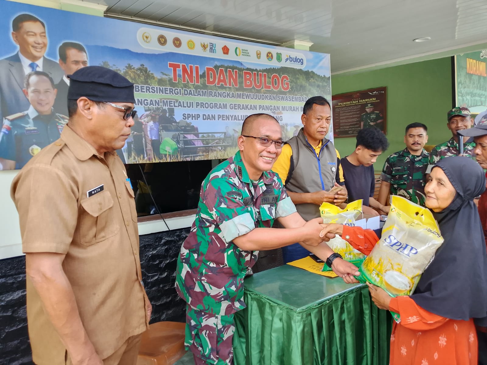 Bayung Lencir, Barometer99.com – Sinergi antara TNI dan Perum Bulog terus diperkuat dalam menjaga ketahanan pangan nasional. Hal ini tampak nyata dalam kegiatan Gerakan Pangan Murah Beras melalui program Stabilisasi Pasokan dan Harga Pangan (SPHP) serta penyaluran Bantuan Pangan (Banpang) yang digelar di halaman Koramil 401-04 Bayung Lencir, Selasa (16/9/2025).