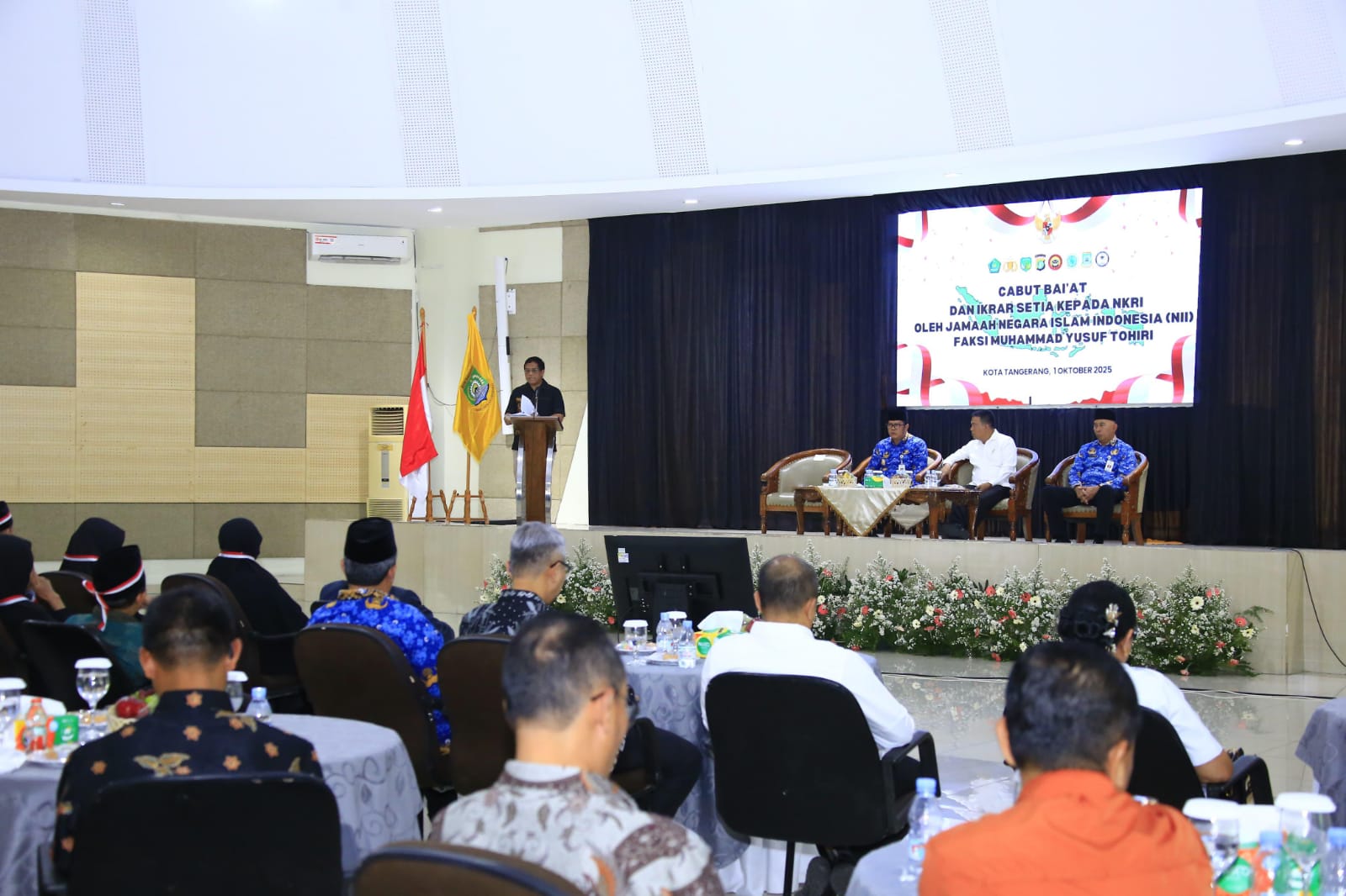 Tangerang, Barometer99.com — Bertepatan dengan peringatan Hari Kesaktian Pancasila, sebanyak 58 orang jamaah eks anggota kelompok Negara Islam Indonesia (NII) faksi MYT (Muhamad Yusuf Tohiri) menyatakan ikrar setia kepada Negara Kesatuan Republik Indonesia (NKRI) dalam sebuah acara yang berlangsung khidmat di Kantor Majelis Ulama Indonesia (MUI) Kota Tangerang, pada Rabu, 1 Oktober 2025 pukul 09.00 WIB.