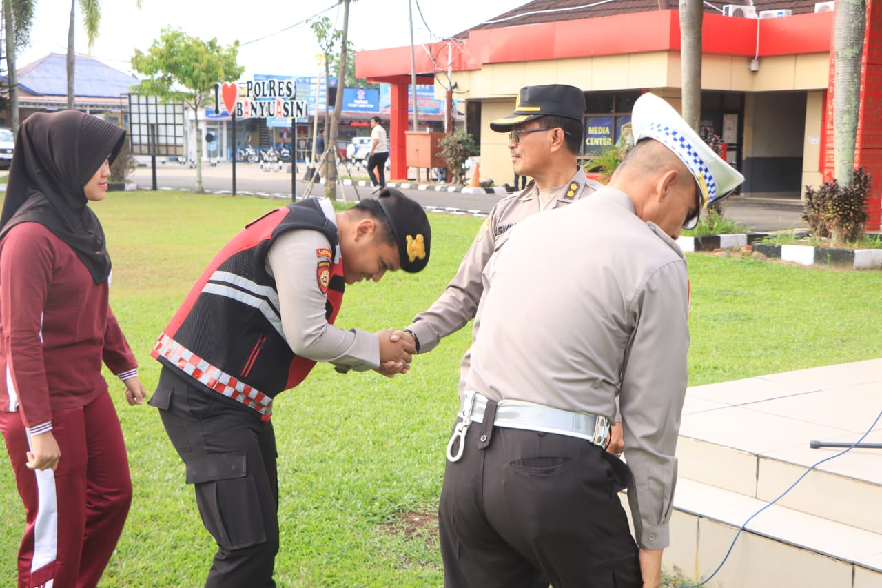 Apel Pagi Polres Banyuasin Sampaikan Arahan Strategis dan Lepas Purnabakti Kabag SDM