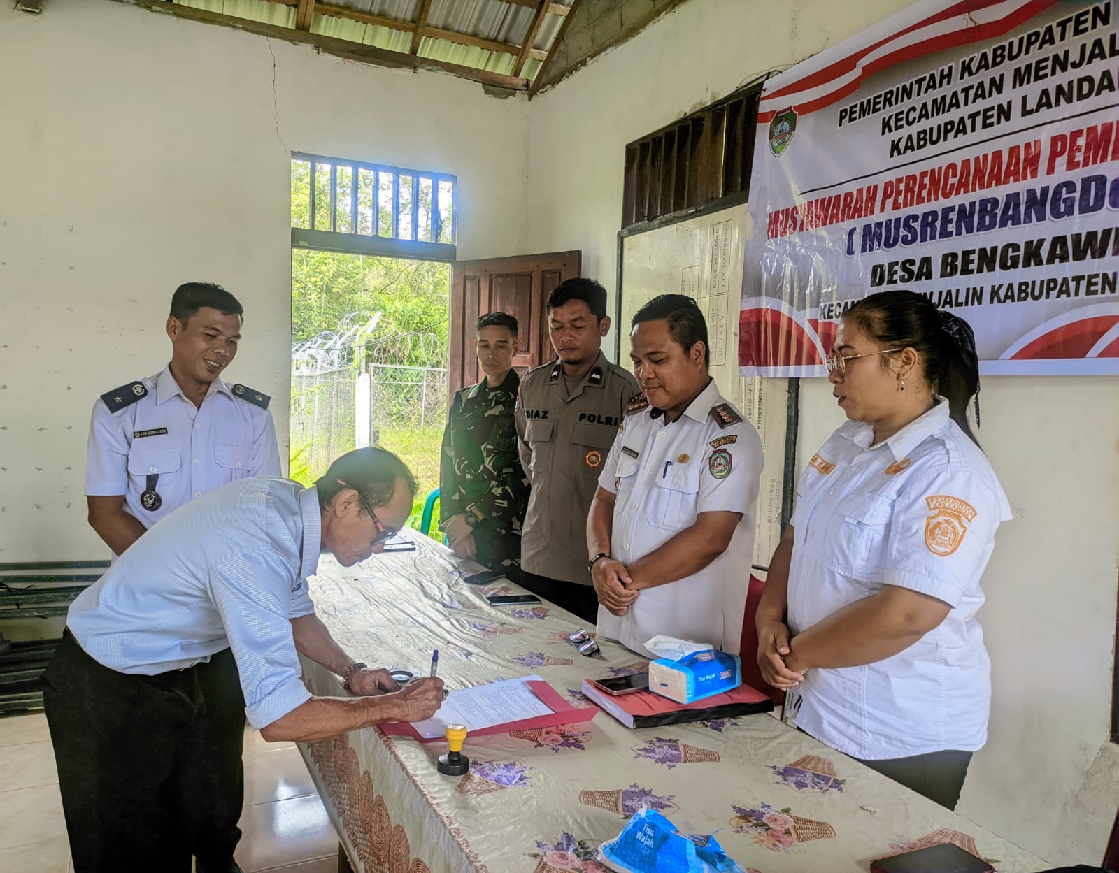 Kalbar, Barometer99.com – Bhabinkamtibmas Polsek Menjalin Polres Landak Polda Kalbar, menghadiri Musyawarah Desa (Musrenbangdes) Tahun Anggaran 2026 Desa Bengkawe Kecamatan Menjalin Kabupaten Landak yang dilaksanakan di Aula Kantor Desa Bengkawe, Rabu (01/10/25), Pagi.