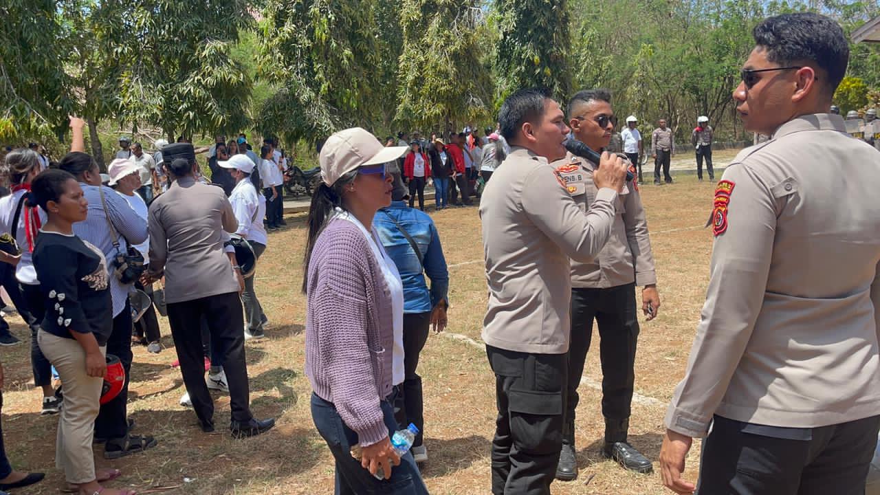 Situasi sempat mencekam dan aparat pengamanan mengambil posisi siaga. Alih-alih menggunakan pendekatan represif, Kapolres Tanimbar AKBP Ayani justru mengambil langkah berani dengan mendekati barisan massa. Tanpa pengawalan ketat, Kapolres berjalan menuju kerumunan dan meminta agar massa dapat berdialog dengannya.