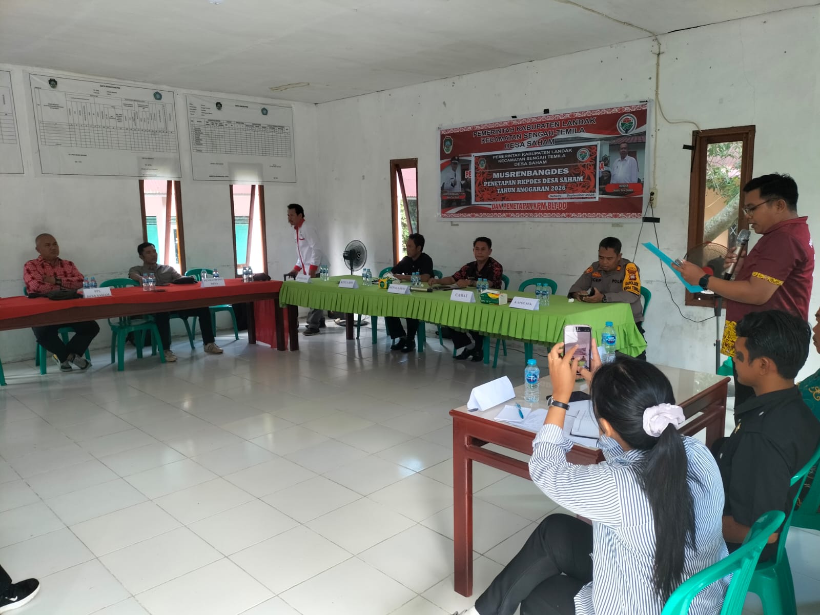 Polsek Sengah Temila ~Polres Landak ~ Polda Kalbar, Barometer99.com ~ Balai Pertemuan Desa Saham, Kecamatan Sengah Temila, Kabupaten Landak, menjadi saksi berlangsungnya Musyawarah Desa (Musdes) tentang Rencana Kerja Pemerintahan Desa (RKPDes) Tahun Anggaran 2026 serta APBDes Perubahan Tahun 2025, Jumat (3/10/2025).