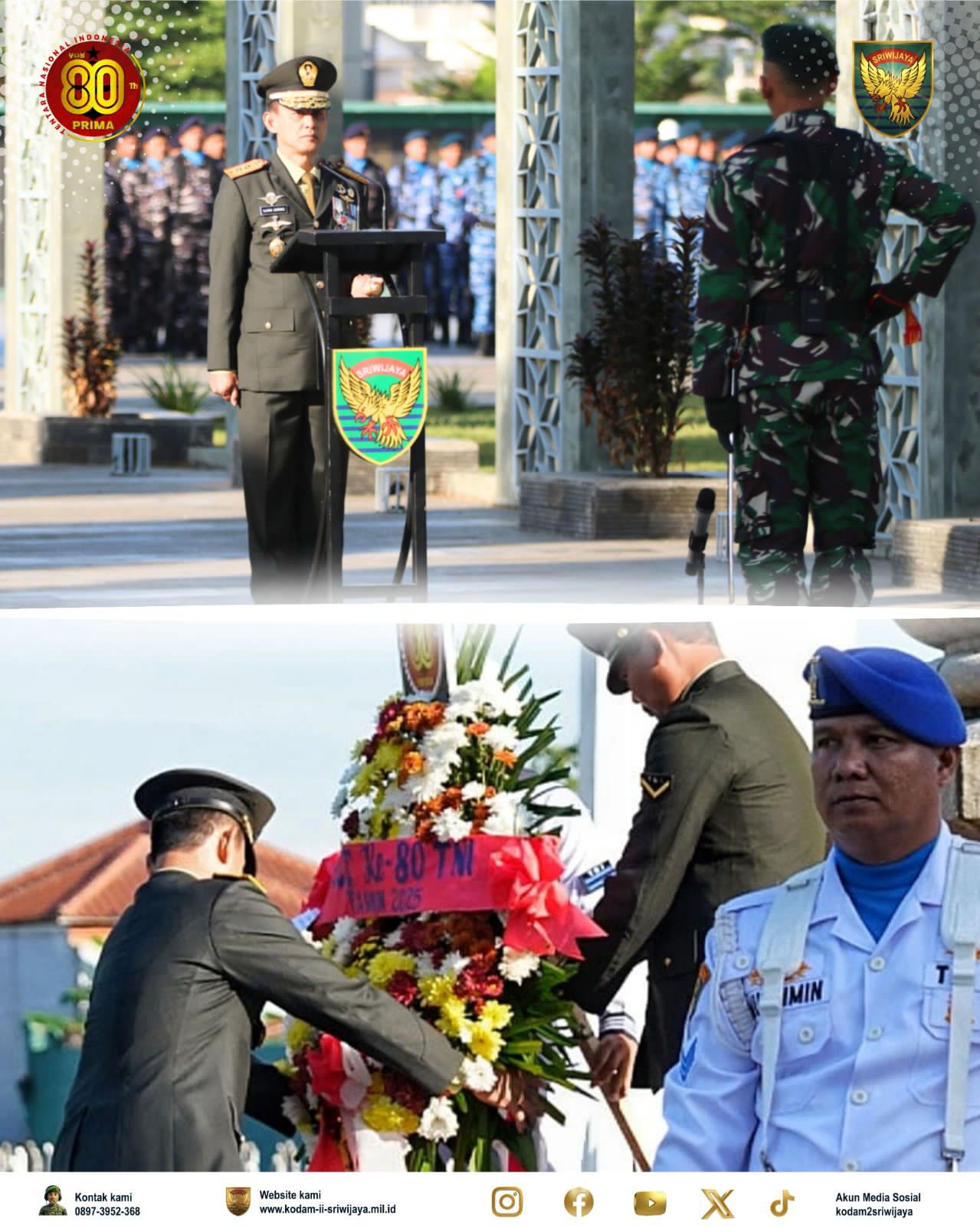 Upacara Ziarah Nasional ini merupakan rangkaian kegiatan dalam rangka Peringatan Hari Ulang Tahun (HUT) Ke-80 TNI Tahun 2025, yang dipimpin langsung oleh Pangdam II/Sriwijaya Mayjen TNI Ujang Darwis, M.D.A., dan diikuti Perwakilan Prajurit dan PNS TNI serta Polri di wilayah Garnizun Palembang. Hadir juga sejumlah PJU TNI-Polri, para Pengurus Dharma Pertiwi Daerah B, para Pengurus Persit KCK PD II/Swj, Jalasenastri dan Pia Ardihya Garini.