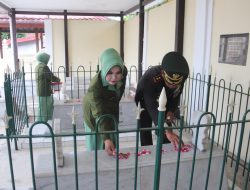 Selaku Pimpinan Ziarah, Dandim memimpin penghormatan kepada Arwah para Pahlawan diikuti oleh seluruh peserta. Selanjutnya dilaksanakan ziarah dengan tabur bunga di pusara makam para Pahlawan.