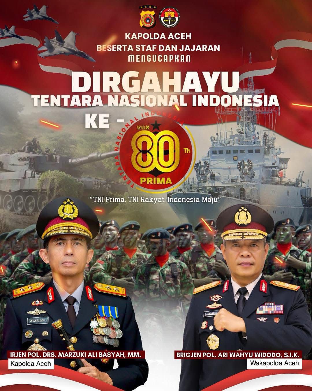 Kapolda Aceh Beserta Staf Dan Bhayangkari Mengucapkan Dirgahayu Tentara Nasional Indonesia Ke-80 Tahun
