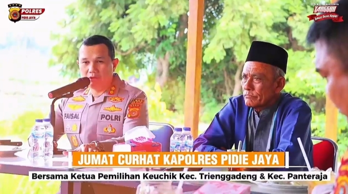 Pidie Jaya, Barometer99.com โ€“ Dalam rangka memperkuat sinergi dan memastikan pelaksanaan pemilihan keuchik serentak (Pilchiksung) berjalan aman, tertib, dan demokratis, Kapolres Pidie Jaya AKBP Ahmad Faisal Pasaribu, S.H., S.I.K., M.H., menggelar kegiatan Jumat Curhat Presisi bersama Ketua Panitia Pemilihan Keuchik (P2K) Kecamatan Trienggadeng dan Panteraja. Kegiatan berlangsung pada Jumat (3/10/2025) di Kantin Tangguh Polres Pidie Jaya, Gampong Teungklut, Kecamatan Trienggadeng, Kabupaten Pidie Jaya.