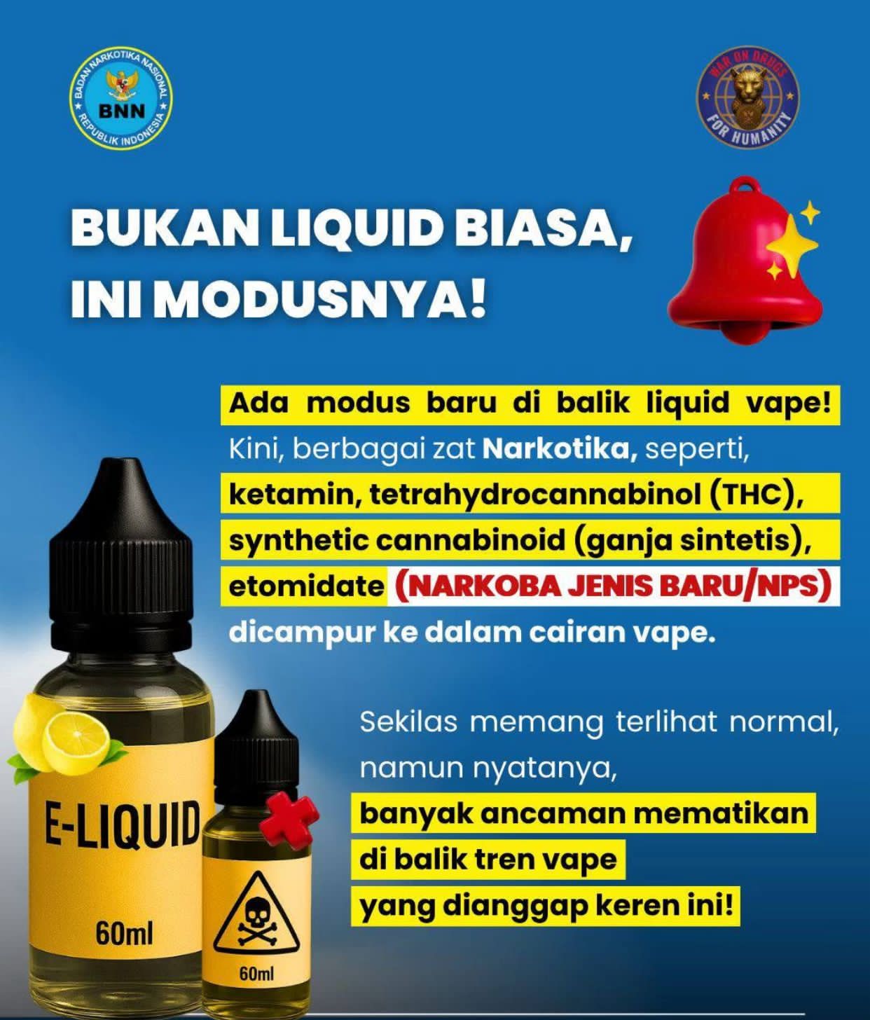 Bukan lagi sekadar isu, tapi modus baru yang nyata! Narkoba Jenis Baru (NPS) kini menyusup lewat liquid vape yang terlihat aman dan keren loh Sober!