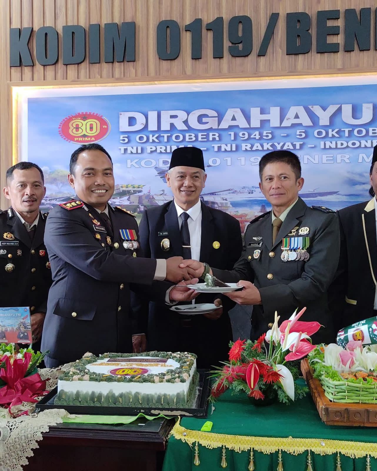 Kapolres Bener Meriah AKBP Aris Cai Dwi Susanto, S.I.K., M.I.K., beserta jajaran turut memeriahkan perayaan tersebut dengan memberikan nasi tumpeng dan kue ulang tahun sebagai bentuk apresiasi dan simbol sinergitas antara TNI dan Polri.