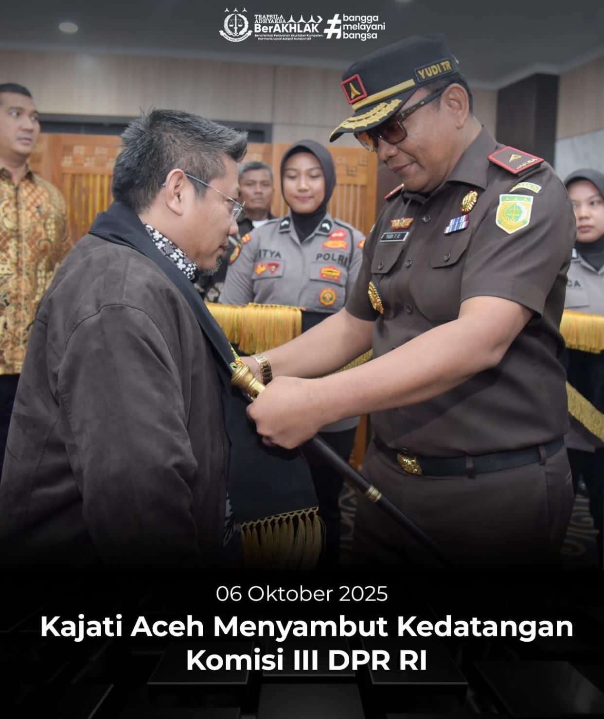 Jakarta, Barometer99.com – Kepala Kejaksaan Tinggi (Kajati) Aceh, Yudi Triadi, S.H., M.H., menyambut kedatangan Ketua Komisi III DPR RI, Dede Indra Permana Soediro, S.H., M.H., beserta rombongan di Bandar Udara Internasional Soekarno–Hatta, Senin (6/10/2025).