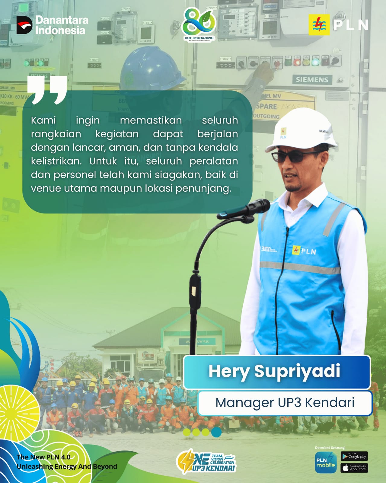 Sebagai bentuk kesiapan, PLN UP3 Kendari menggelar apel gelar pasukan di halaman ULP Wua-Wua yang dipimpin langsung oleh Manager PLN UP3 Kendari, Hery Supriyadi. Apel ini diikuti oleh ratusan personel siaga serta menampilkan kesiapan peralatan pendukung kelistrikan untuk memastikan seluruh rangkaian kegiatan nasional ini berjalan lancar tanpa gangguan pasokan listrik.