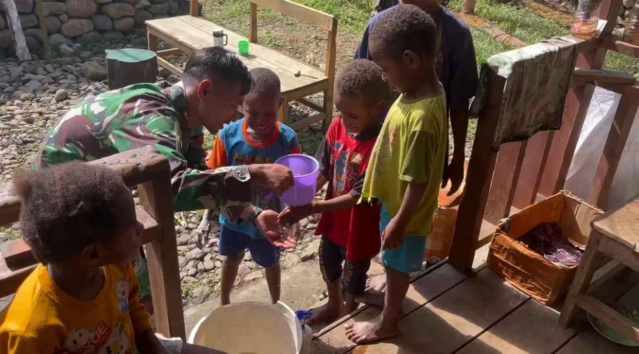 Kampung Bringin, Papua Pegunungan, Barometer99.com — Pos Selal melaksanakan pembinaan teritorial bertema hidup bersih dan sehat bagi anak-anak Kampung Bringin. Kegiatan ini dilakukan oleh salah satu anggota Pos Selal Kopda Galuh dengan pendekatan praktik langsung, mulai dari cara memotong kuku yang benar, membiasakan cuci tangan pakai sabun sebelum makan dan setelah beraktivitas, hingga ajakan makan bersama untuk memenuhi kebutuhan gizi seimbang (Senin,6/10/2025).