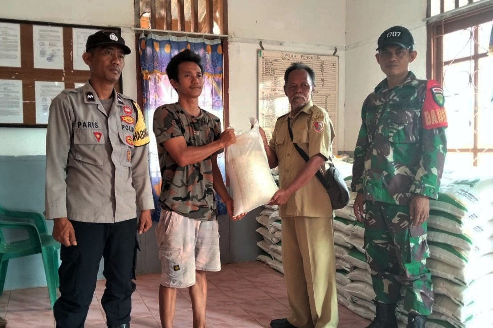 Babinsa Koramil Muting Dampingi Penyaluran Beras Untuk Warga