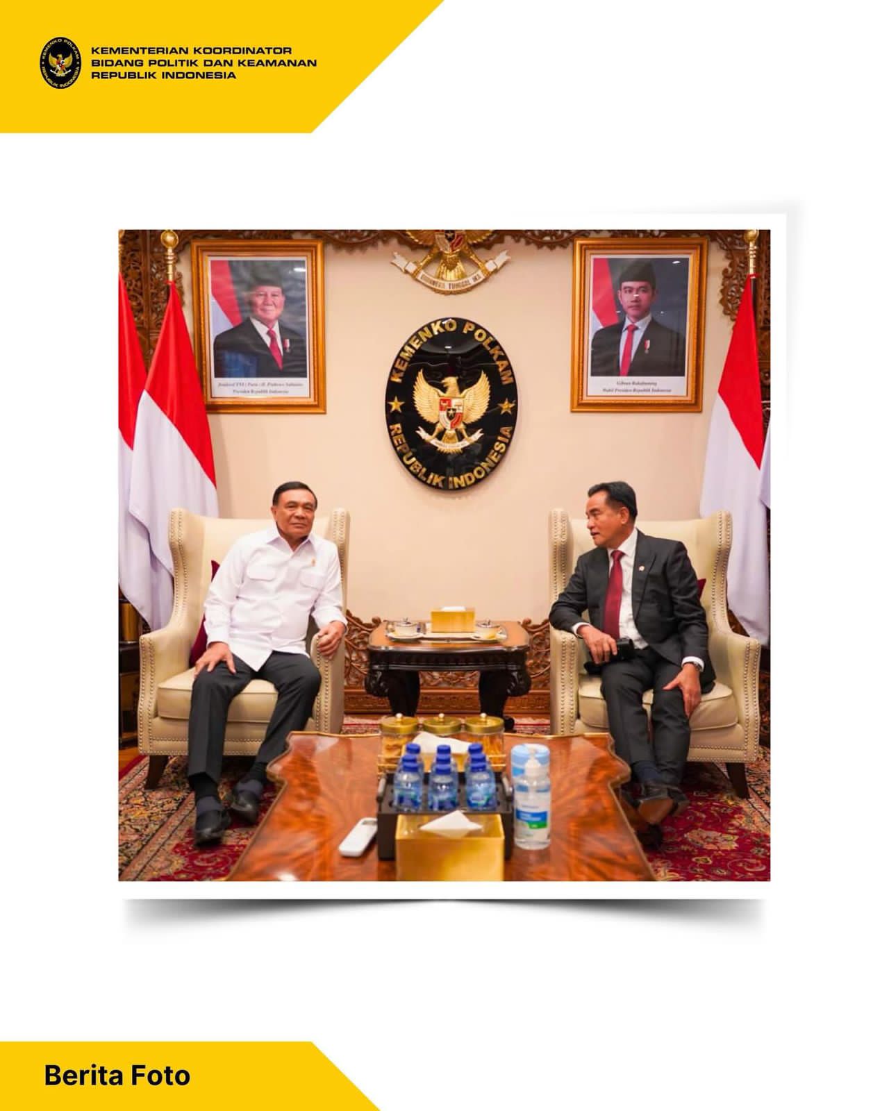 Jakarta, Barometer99.com – Menteri Koordinator Bidang Politik dan Keamanan Jenderal TNI (Purn.) Djamari Chaniago menerima kunjungan Menteri Koordinator Bidang Hukum, Hak Asasi Manusia, Imigrasi, dan Pemasyarakatan Yusril Ihza Mahendra. Pertemuan dilakukan di Kantor Kemenko Polkam, Selasa, (7/10/25).