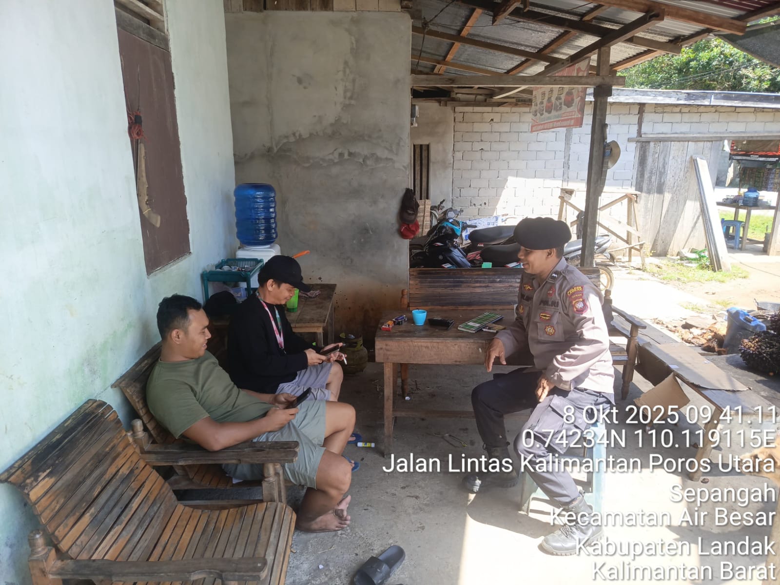 Polsek Air Besar ~ Polres Landak ~ Polda Kalbar, Barometer99.com ~ Dalam rangka menjaga situasi kamtibmas agar tetap aman dan kondusif, Petugas Polsek Air Besar melaksanakan kegiatan patroli sambang warga di wilayah Desa Sepangah, Kecamatan Air Besar, Kabupaten Landak, Kalimantan Barat, ” Rabu (8/10/2025)