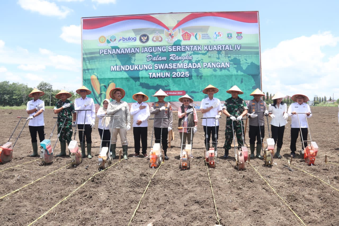 Ogan Komering Ilir, Barometer99.com, Sumatera Selatan – Polda Sumatera Selatan mendukung penguatan ketahanan pangan nasional melalui kegiatan penanaman jagung serentak kuartal IV di Kabupaten Ogan Komering Ilir, Rabu (8/10/2025). Kegiatan berlangsung di Jalan Sepucuk, Kelurahan Kotarayo, Kecamatan Kayuagung, dan diikuti Kapolda Sumsel Irjen Pol. Andi Rian R Djajadi, S.I.K., M.H., Forkopimda Provinsi Sumsel, serta masyarakat setempat.