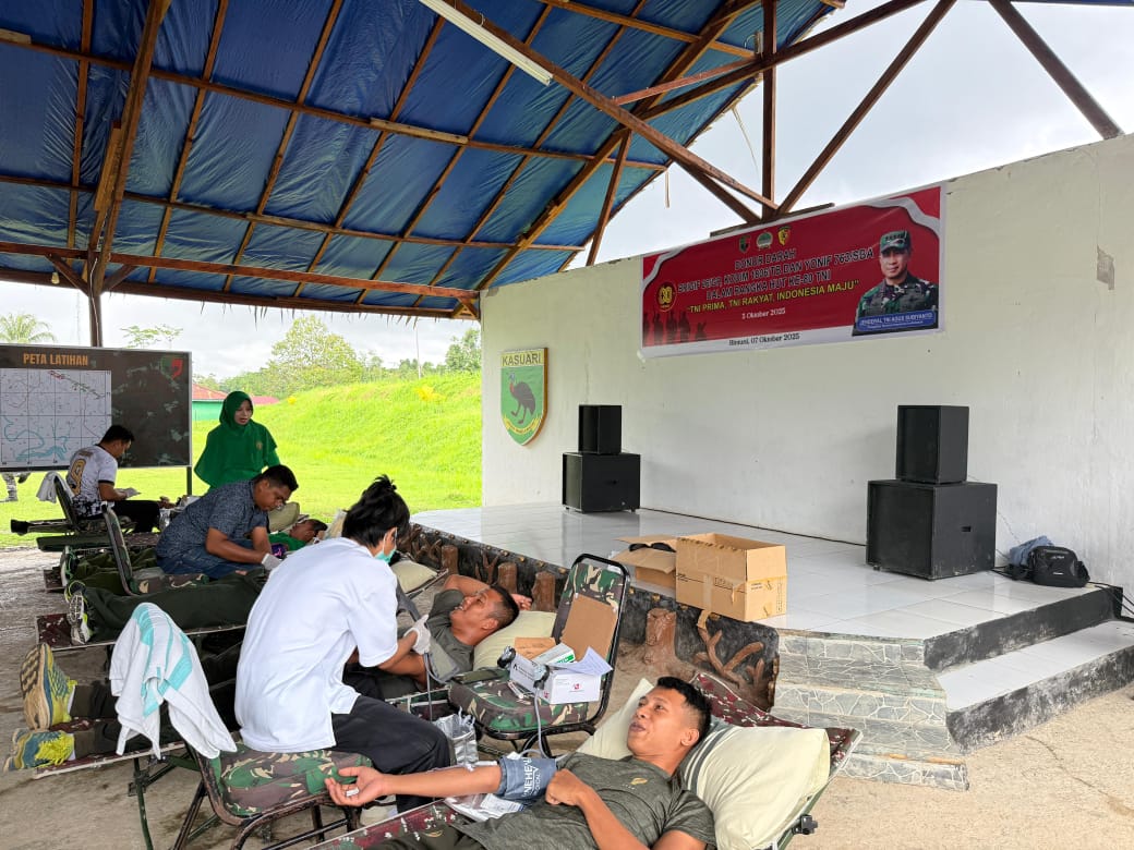 Brigif 26/GP dan Korum Yonif 763/SBA Gelar Donor Darah Sambut HUT TNI ke-80