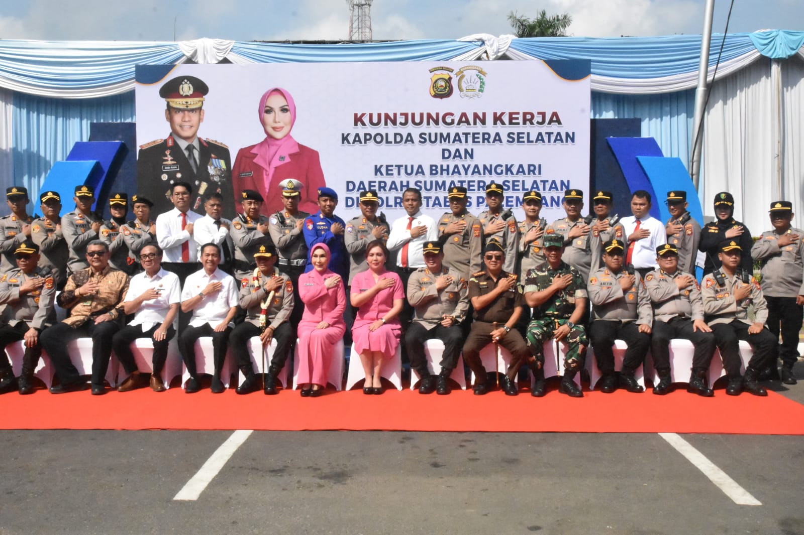 Rombongan Kapolda Sumsel dan Ketua Bhayangkari tiba di Mapolrestabes Palembang dan disambut dengan upacara kehormatan serta rangkaian acara penyambutan penuh kehormatan.