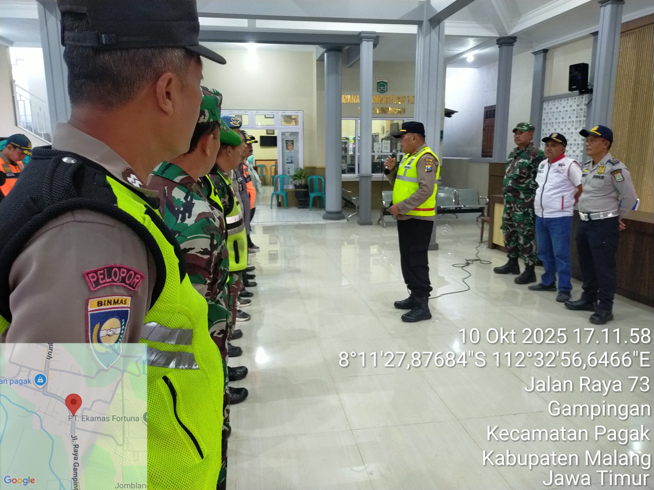 Dalam arahannya, Kapolsek Pagak Iptu Surdianto, S.H. menekankan pentingnya koordinasi dan sinergitas antarinstansi dalam menjaga keamanan kegiatan masyarakat.