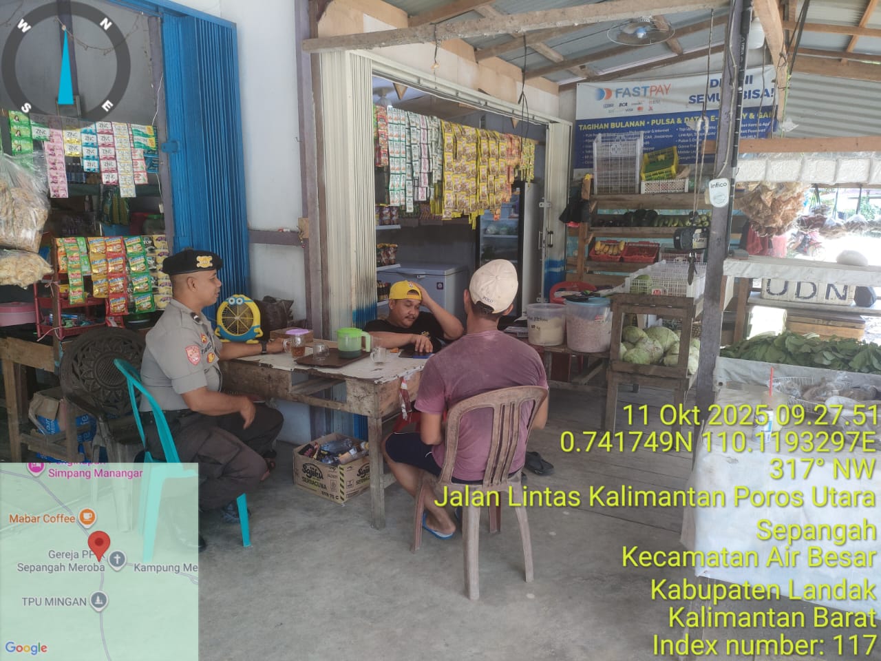 Polsek Air Besar ~ Polres Landak ~ Polda Kalbar, Barometer99.com ~ Suasana siang yang hangat di wilayah Kecamatan Air Besar, Kabupaten Landak, tampak semakin akrab ketika petugas Polsek Air Besar melaksanakan patroli rutin dan menyapa warga yang tengah duduk santai di pinggir jalan desa, “Sabtu (11/10/2025)