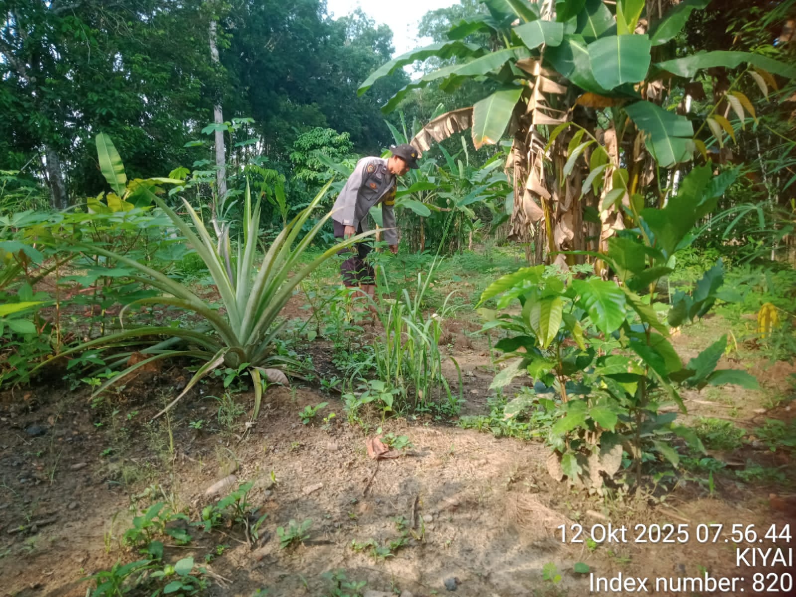 Dalam rangka kegiatan tersebut, Aipda Azharu melakukan pengecekan langsung terhadap kondisi tanaman pekarangan salah seorang warga Kelurahan Betung, Kecamatan Betung, Kabupaten Banyuasin.