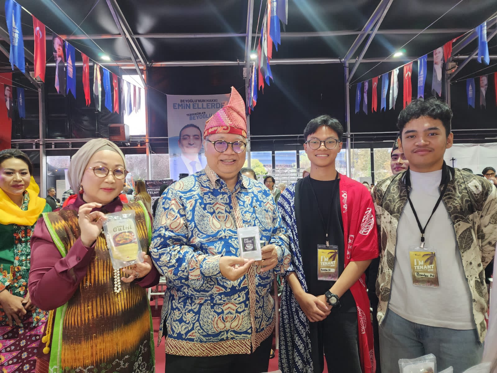 “Kami membawa produk-produk seperti rendang, Kopi Nusantara dalam kesempatan ini adalah Kopi Lahat dan makanan khas daerah serta Bumbu Nusantara , agar masyarakat luar mengenal kekayaan kuliner Indonesia,” dan mengobati rasa rindu Pelajar dab Diaspora yg tersebar di berbagai negara, katanya.