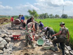 Barometer99-Sleman — Suara gemuruh alat pengaduk adonan semen (molen) dan semangat gotong royong menggema di Margoluwih Seyegan Sleman, Di bawah terik matahari Program TNI Manunggal Membangun Desa (TMMD) yang digawangi Kodim 0732/Sleman perlahan namun pasti mulai menunjukkan hasil nyata.Minggu (12/10/2025).