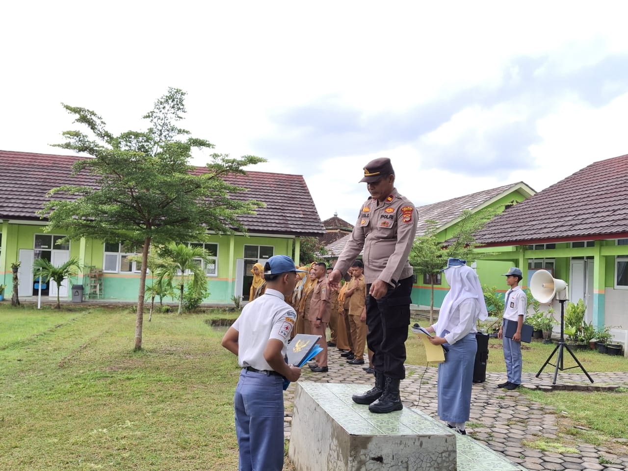 Giat dilaksanakan oleh Kasat Samapta AKP Yus Mawardi S.H dengan menjadi Inspektur upacara di Sekolah MAN 01 Simpang Pematang, IPTU Tata Subrata menjadi Irup di SMAN 01 Mesuji Timur dan Kanit Binkamsa AIPTU Muharman DS menjadi Irup di SMAN 01 Simpang Pematang.