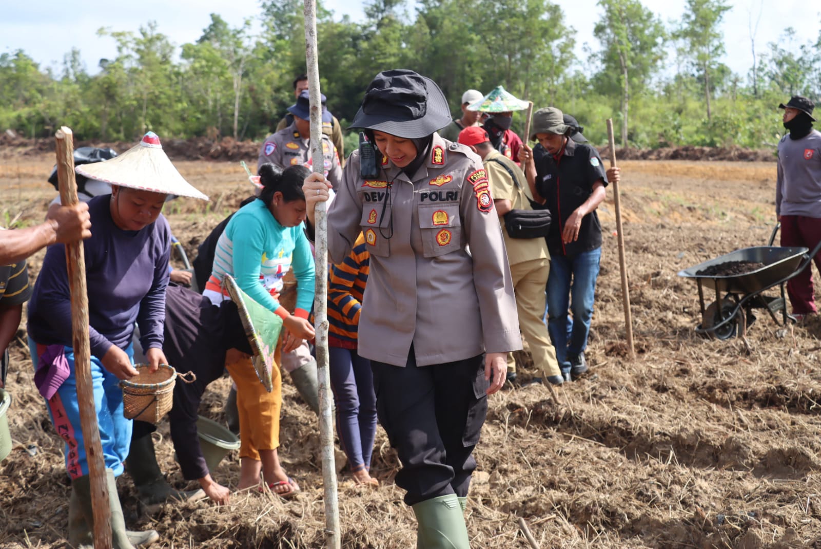 Kegiatan kemudian dilanjutkan dengan penanaman simbolis oleh Kapolres Landak bersama para pejabat dan masyarakat setempat, yang disambut antusias oleh warga.