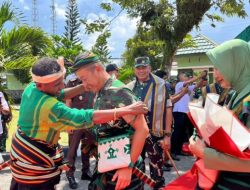 Penyambutan berlangsung meriah dengan tarian adat khas Sumba Barat sebagai ungkapan penghormatan dan selamat datang kepada Pangdam IX/Udayana beserta rombongan.