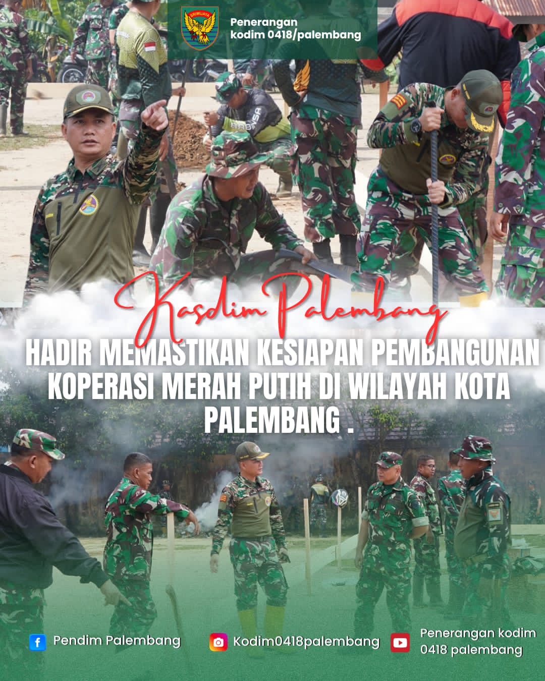 Ia juga memastikan bahwa Kodim 0418/Palembang siap bersinergi dengan semua pihak, termasuk pemerintah daerah dan mitra strategis, agar pembangunan koperasi ini dapat terlaksana dengan lancar dan memberi manfaat nyata bagi masyarakat.