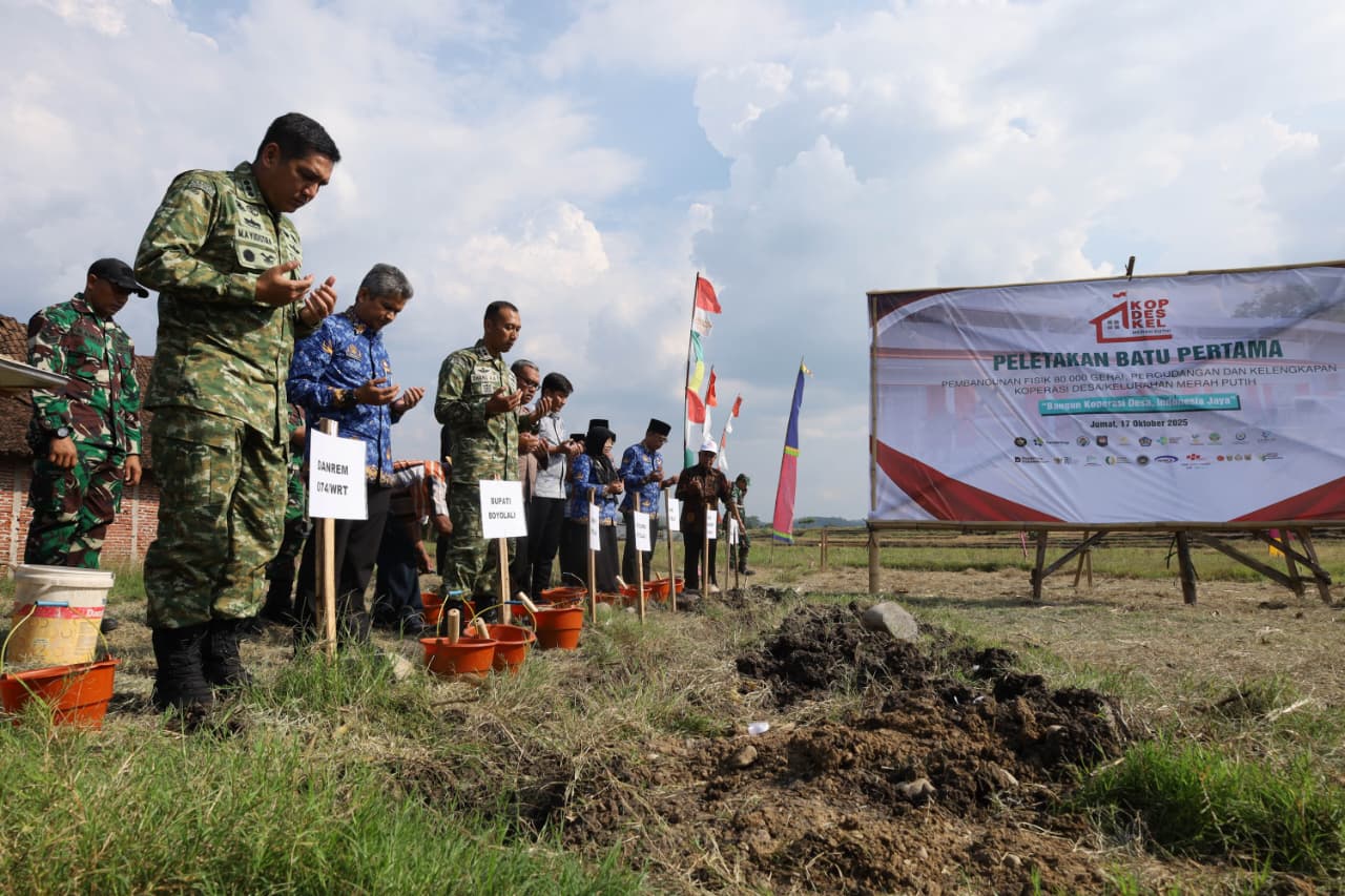 Boyolali, Barometer99.com – Danrem 074/Warastratama Kolonel Inf M. Arry Yudistira S.I.P, M.I.Pol.,M.Han. didampingi Dandim 0724/Boyolali Letkol Inf Dhanu Anggoro Asmoro, S.E. dalam kegiatan groundbreaking (peletakan batu pertama) pembangunan Koperasi Merah Putih (KMP) di Desa Bandung, Kecamatan Wonosegoro, Kabupaten Boyolali, Jumat (17/10/2025).