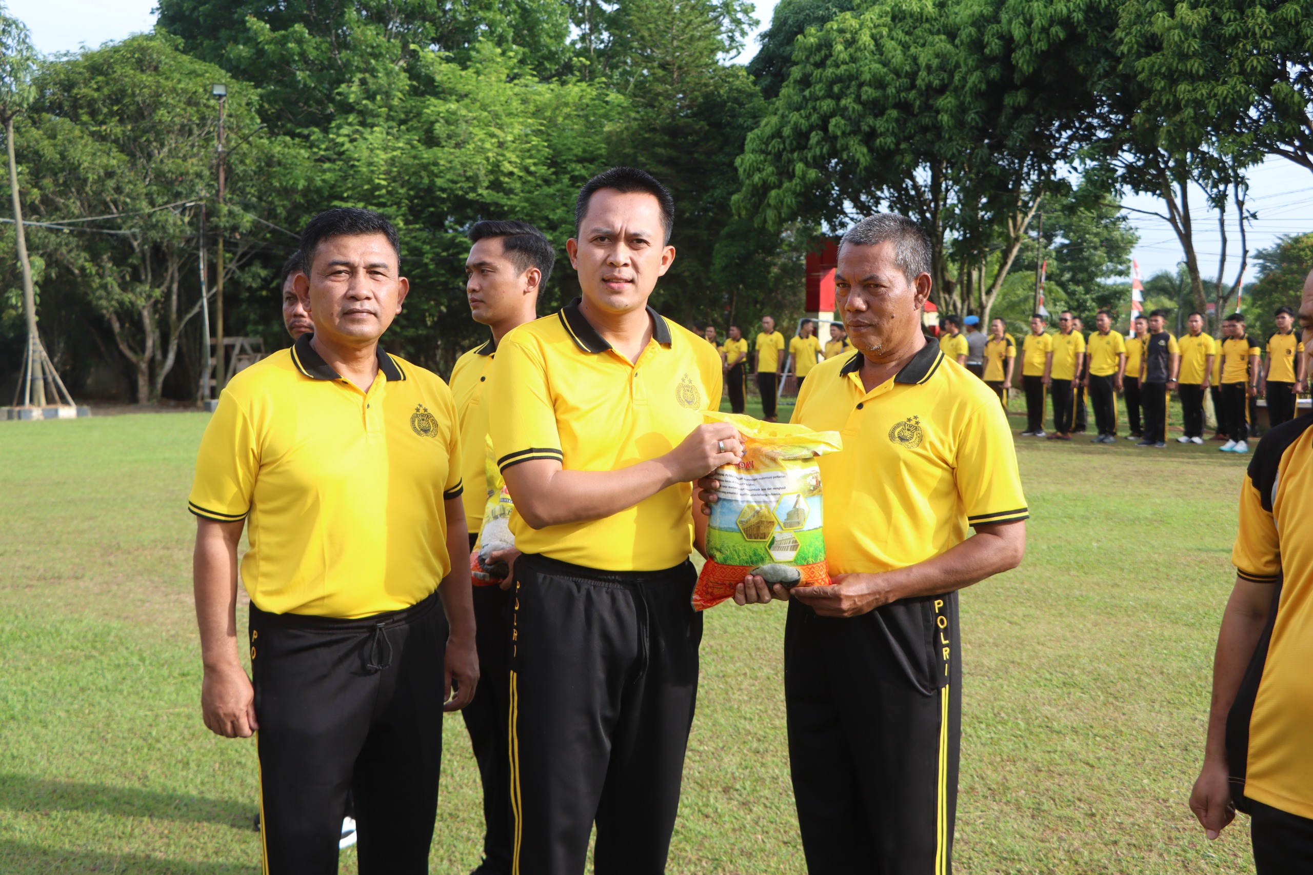 Sebagai wujud kepedulian dan perhatian pimpinan terhadap kesejahteraan personel, Kapolres Banyuasin secara simbolis menyerahkan tali asih berupa paket sembako (beras) kepada para personel. Pemberian bantuan sosial ini diharapkan dapat meringankan beban ekonomi keluarga personel.
