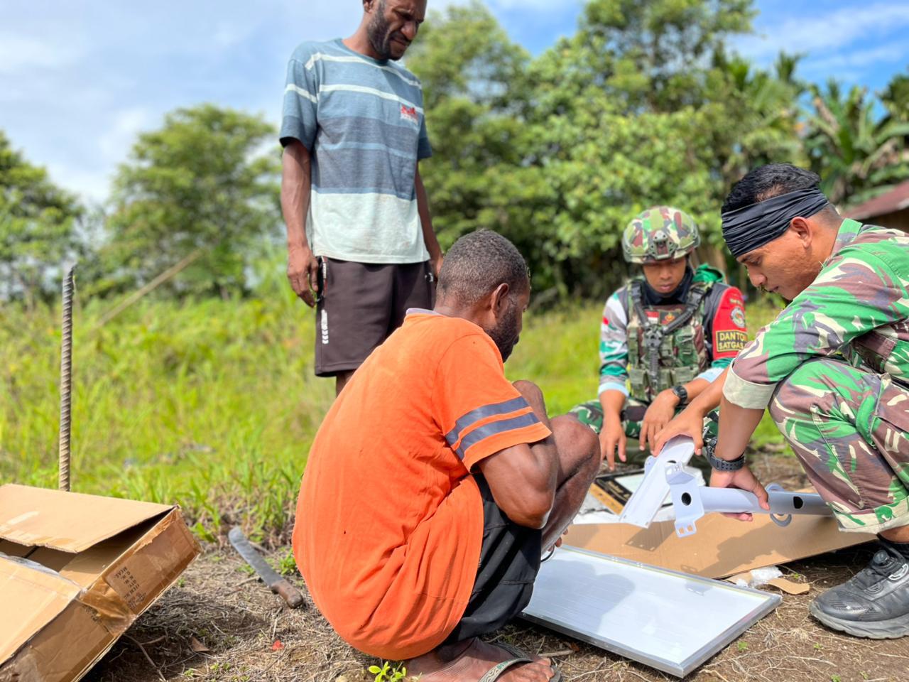 Pos Iwur Satgas Yonif 751/VJS Terangi Kampung Kamnyoim dengan Lampu Tenaga Surya