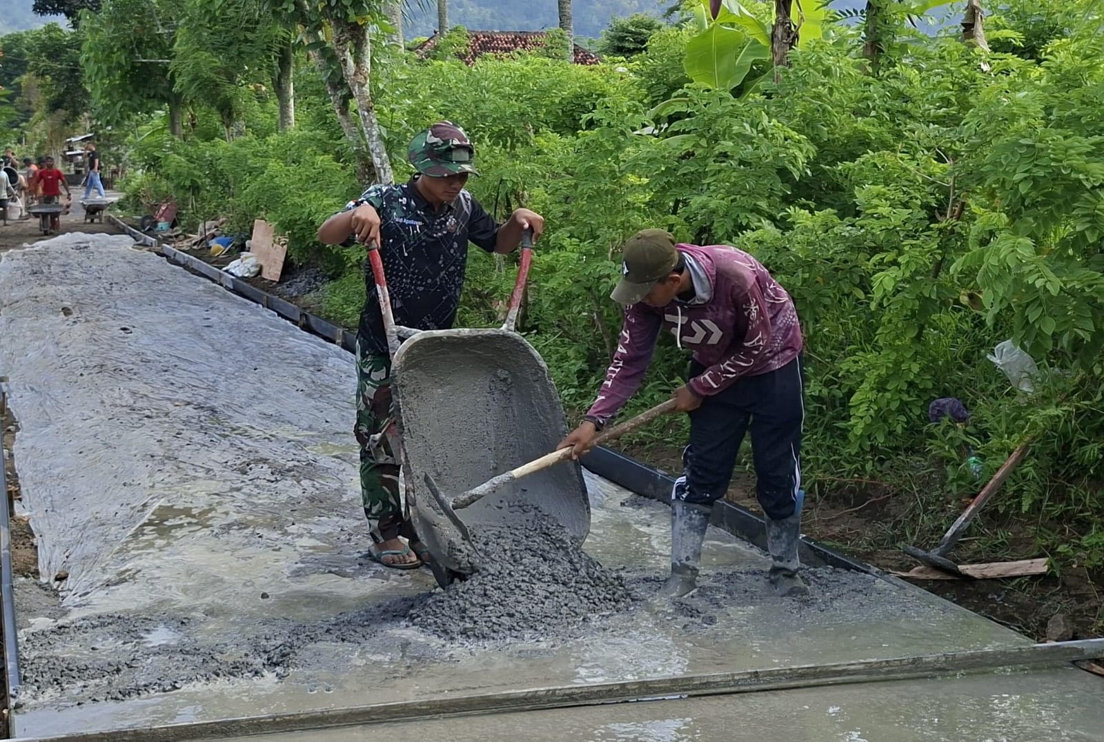 Keringat dan Semangat Gotong Royong Satukan Prajurit dan Warga Krajan 1A, Akses Desa Kian Terbuka.