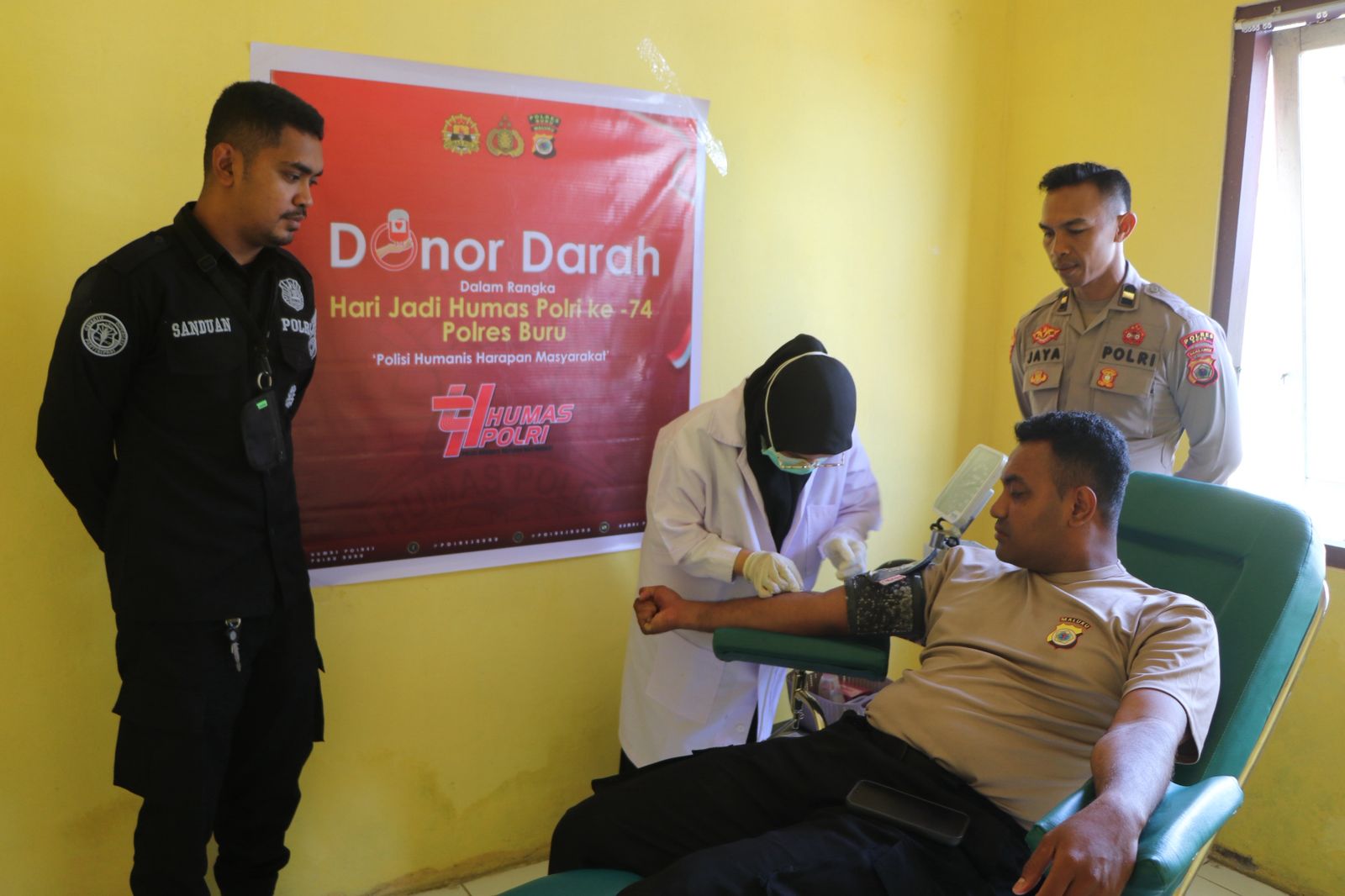 Polres Buru Gelar Donor Darah dalam Rangka Hari Jadi Humas Polri ke-74 Wujud Nyata Polisi Humanis