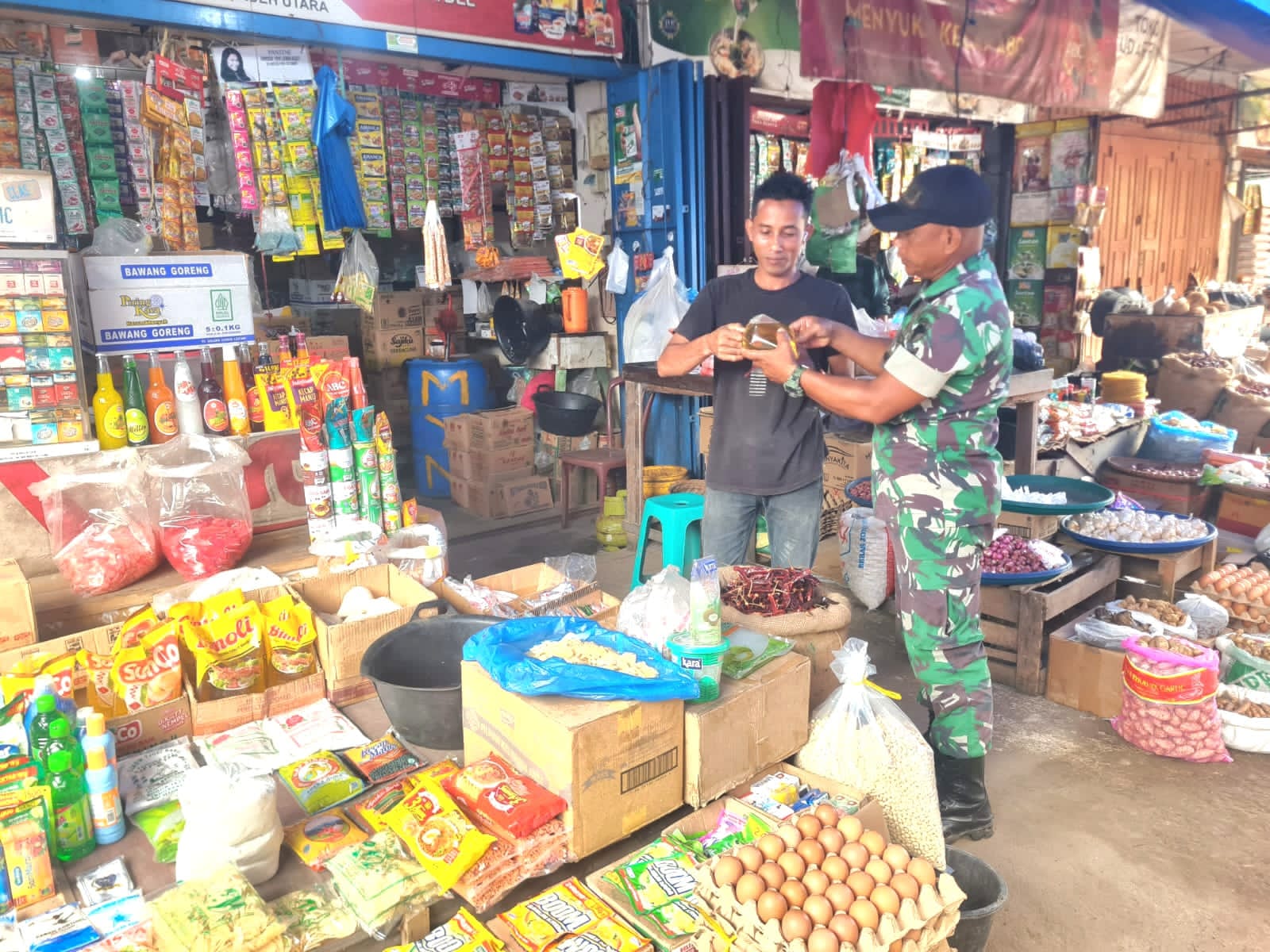 Babinsa Pantau Stabilitas Harga Sembako di Pasar Keude Krueng Geukueh