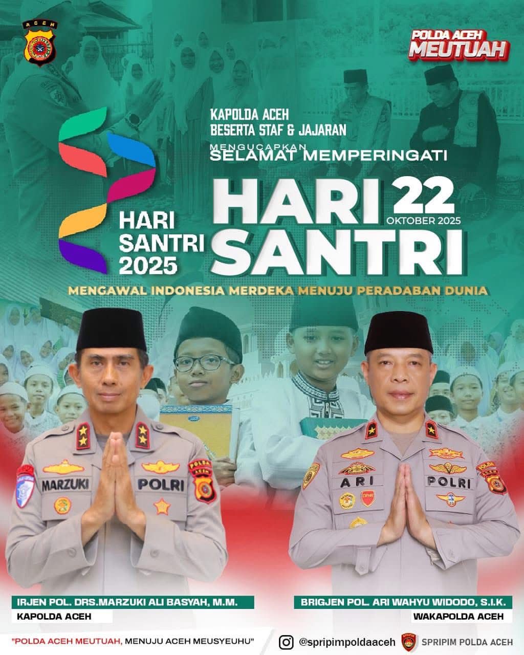 Kapolda Aceh Beserta Staf dan Jajaran Mengucapkan Selamat Memperingati Hari Santri 2025