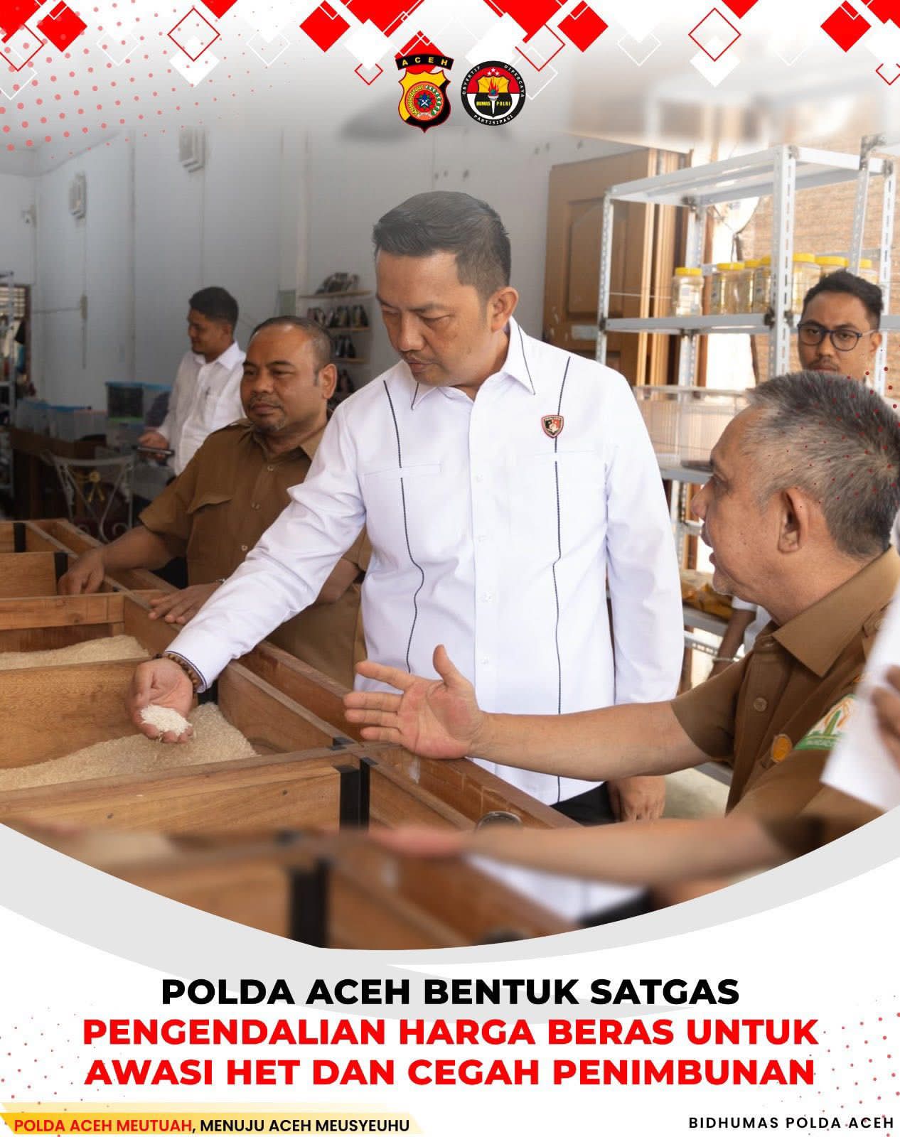 Banda Aceh, Barometer99.com — Polda Aceh membentuk Satuan Tugas (Satgas) Pengendalian Harga Beras untuk memastikan harga beras di pasaran tetap sesuai harga eceran tertinggi (HET) dan kualitas produk sesuai dengan label yang beredar di masyarakat.