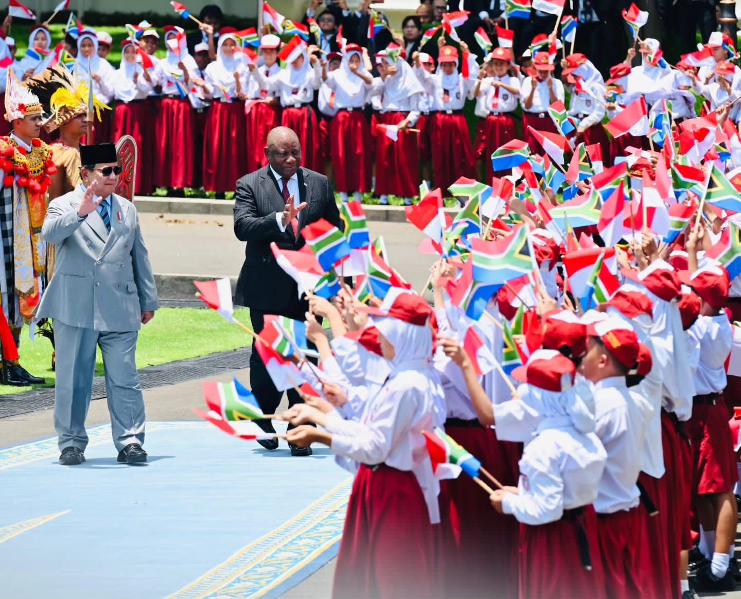 “Merupakan kehormatan besar bagi kami berada di sini hari ini. Kami memandang kunjungan ini sebagai momen yang sangat penting bagi Afrika Selatan di Indonesia. Kami ingin menyampaikan terima kasih atas kehormatan yang diberikan melalui kunjungan kenegaraan tingkat tinggi ini. Kami tidak menganggapnya sebagai hal biasa. Kami melihatnya sebagai bukti nyata pentingnya hubungan antara Afrika Selatan dan Indonesia,” ujar Presiden Ramaphosa.