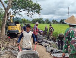 Barometer99-Sleman — Satgas TNI Manunggal Membangun Desa (TMMD) Tahap IV Kodim 0732/Sleman tahun 20025 bersama masyarakat terlihat semakin bersemangat mengerjakan sasaran fisik yaitu pembuatan talud, di Kalurahan Margoluwih Seyegan Sleman,Jumat (24/10/2025).