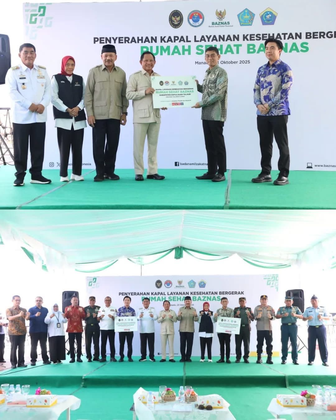 Barometer99.com – Saya selaku Kepala Badan Nasional Pengelola Perbatasan (BNPP) menyaksikan penyerahan bantuan dua unit kapal layanan kesehatan bergerak Rumah Sehat Badan Amil Zakat Nasional (Baznas) kepada Pemerintah Kabupaten (Pemkab) Kepulauan Talaud dan Pemkab Kepulauan Sangihe. Penyerahan ini dilakukan secara simbolis oleh Ketua Baznas RI kepada Bupati Kepulauan Talaud di Dermaga Bay, Kota Manado, Sulawesi Utara (Sulut).