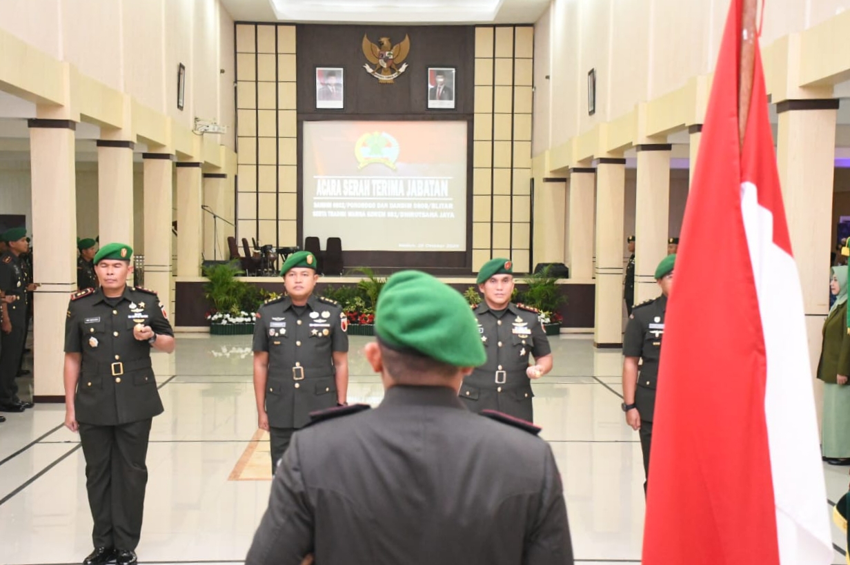 Madiun, Barometer99.com – Dua jabatan strategis di jajaran Korem 081/DSJ diserahterimakan. Dandim 0802/Ponorogo dari Letkol Inf Dwi Soerjono kepada Letkol Inf Farauk Saputra dan Dandim 0808/Blitar dari Letkol Inf Hendra Sukmana kepada Letkol Inf Virlani Arudyawan.