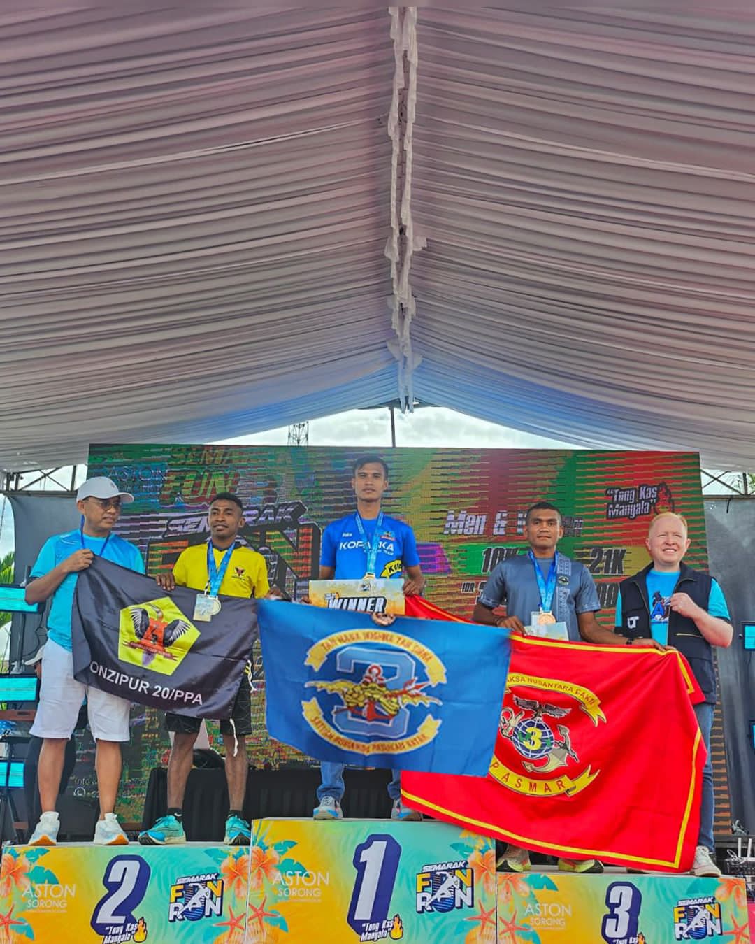 Sorong PBD, Barometer99.com, (26/10/25) — Prajurit Satuan Komando Pasukan Katak (Satkopaska) Koarmada III kembali menorehkan prestasi membanggakan di bidang olahraga. Dalam ajang “Semarak Aston Fun Run 2025” yang digelar di Aston Sorong, Kelasi Kepala (Klk) Brian Yakob berhasil meraih Juara 1 kategori 10 Kilometer (10K) dengan catatan waktu impresif 00:36’09”01.