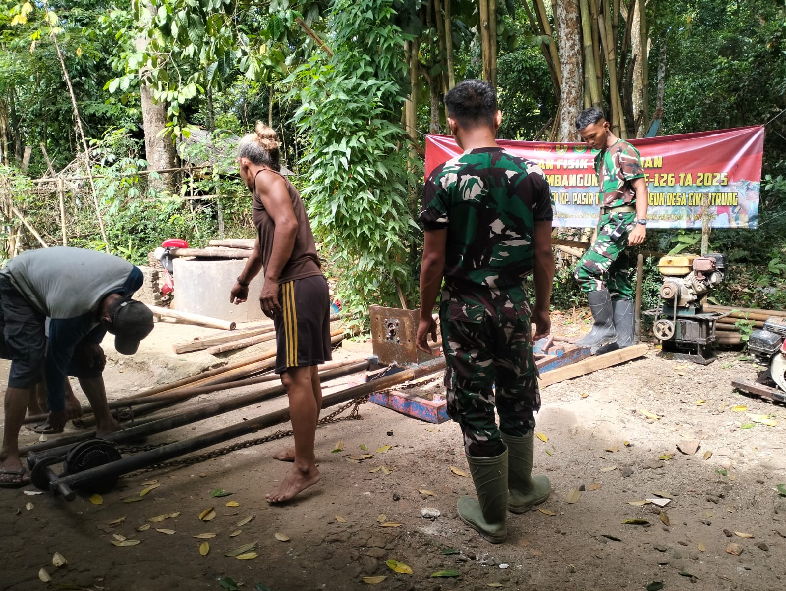 Pandeglang, Barometer99.com – Semangat TNI Manunggal Membangun Desa (TMMD) ke-126 Kodim 0601/Pandeglang terus menggema di tengah masyarakat. Pada hari ke-19 pelaksanaan program TMMD, anggota Satgas bersama warga kembali melaksanakan kegiatan pendampingan pengeboran sumur bor titik ke-4 yang berlokasi di Kampung Pasir Talun RT 02 RW 04, Desa Cikentrung, Kecamatan Cadasari, Kabupaten Pandeglang. (27/10/2025). Hingga saat ini, progres pekerjaan telah mencapai 50 persen.