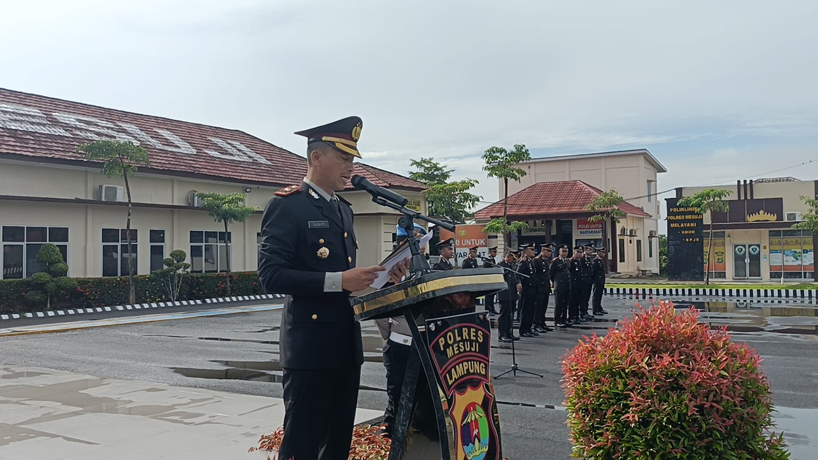 Kapolres Mesuji AKBP Dr. Muhammad Firdaus S.Ik, M.H melalui Waka Polres Mesuji Kompol Trisno Sigit S.H, M.H Dalam amanatnya menyampaikan pesan pentingnya semangat Sumpah Pemuda sebagai tonggak persatuan dan kesatuan bangsa.