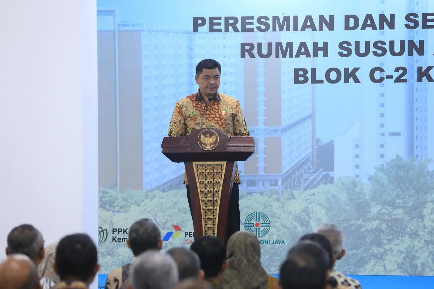 Jakarta, Barometer99.com – Wakil Menteri Sekretaris Negara Juri Ardiantoro bersama dengan Sekretaris Jenderal Kementerian Perumahan dan Kawasan Permukiman (PKP) Didyk Choiroel melakukan Peresmian dan Serah Terima Kunci Rumah Susun (Rusun) ASN, TNI, dan Polri Blok C-2 Kemayoran dari Kementerian Perumahan dan Kawasan Permukiman kepada Kementerian Sekretariat Negara, Rabu (29/10/2025).