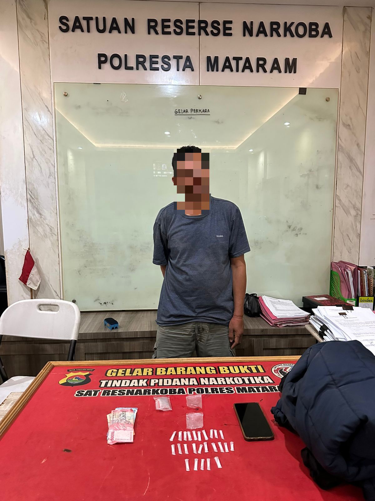 “Informasi itu segera kami tindak lanjuti. Setelah dilakukan penyelidikan, tim menemukan seorang pria yang diduga kuat sebagai pengedar. Pelaku diketahui berasal dari Lombok Tengah dan sudah cukup lama beroperasi di wilayah Mataram,” ungkap Kasat.