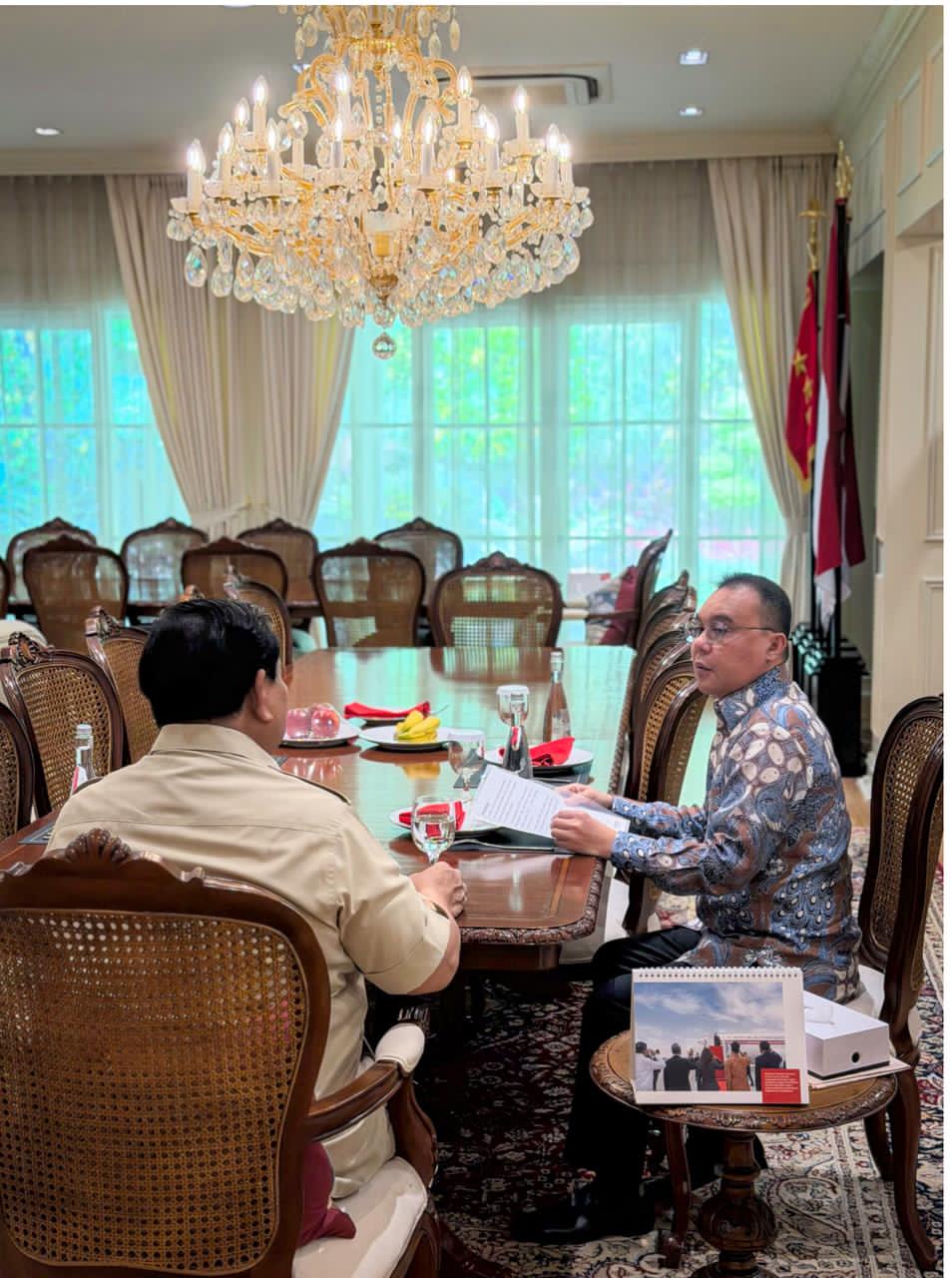 Jakarta, Barometer99.com – Presiden Prabowo Subianto mengundang Wakil Ketua DPR RI Sufmi Dasco Ahmad di Widya Chandra, Jakarta pada Rabu, 29 Oktober 2025. Momen pertemuan Presiden Prabowo dan Sufmi Dasco disampaikan oleh Sekretaris Kabinet Teddy Indra Wijaya dalam unggahan di media sosial resminya.