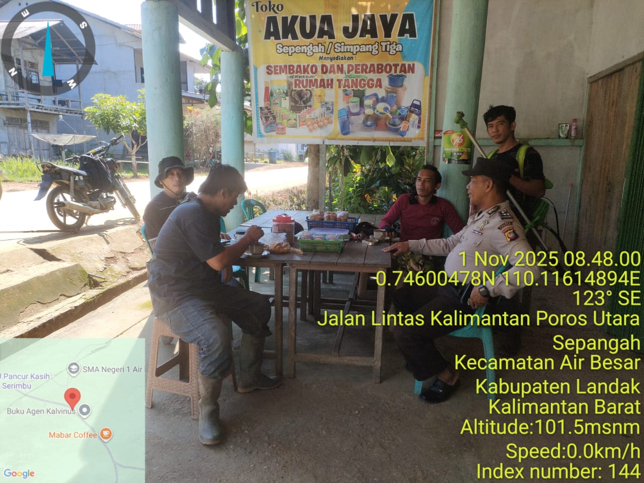 Polsek Air Besar ~ Polres Landak ~ Polda Kalbar, Barometer 99.com ~ Guna menciptakan situasi keamanan dan ketertiban masyarakat (Kamtibmas) yang aman serta kondusif, personel Polsek Air Besar melaksanakan patroli dialogis siang hari di wilayah Desa Sepangah, Kecamatan Air Besar, Kabupaten Landak, pada Sabtu (1/11/2025).
